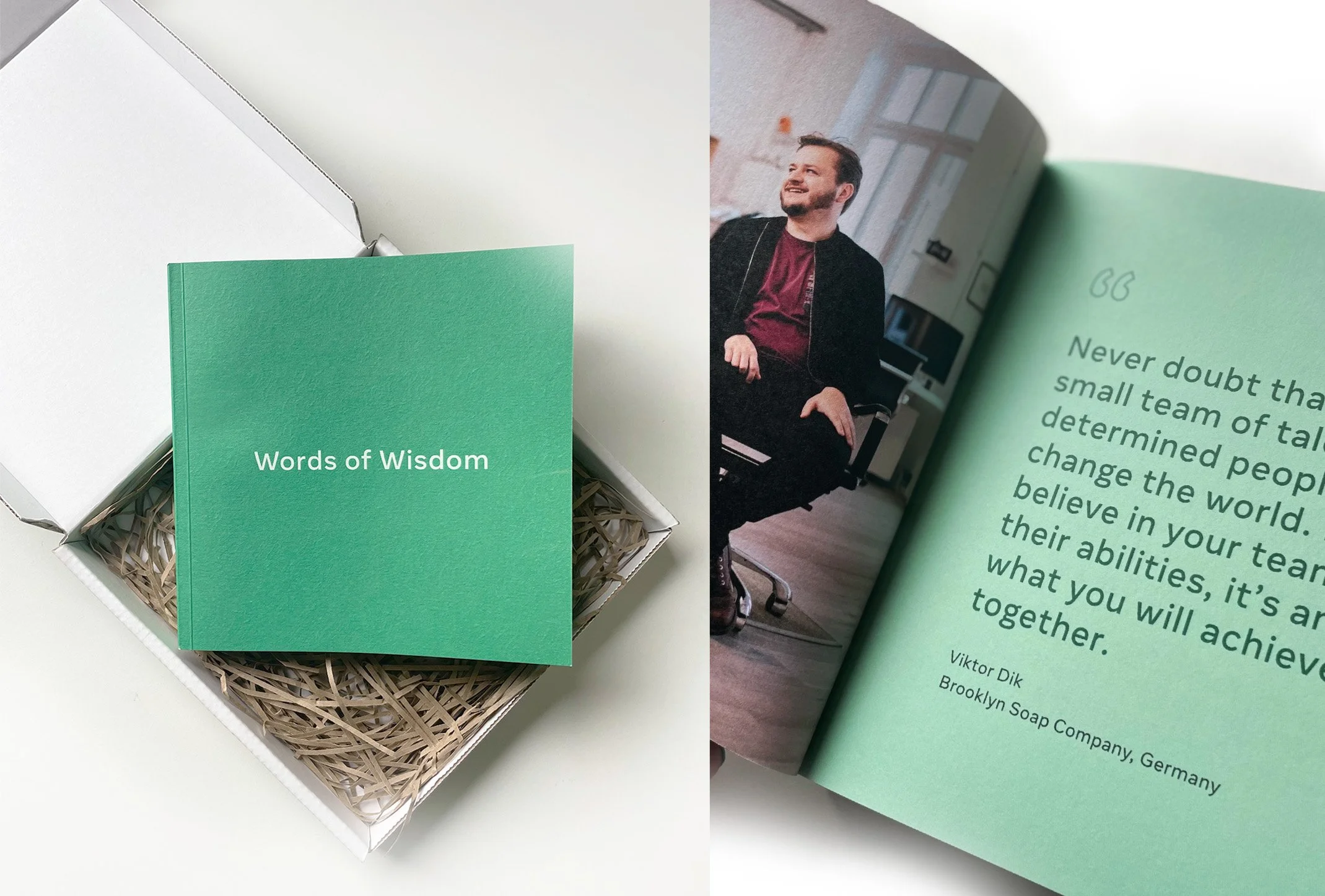 Coffee table book of aspirational and encouraging quotes from small business owners across EMEA. Books where sent out to the small business owners who were part of the Meta Boost Leaders Network programme to stimulate positive sentiment and encorage participation in the programme.